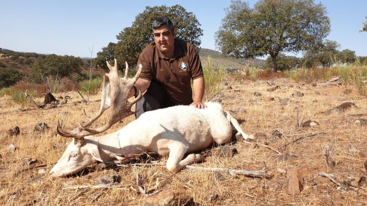 El gamo blanco es una especie emblemática en nuestras fincas, resultado de años de crianza y selección para lograr un ejemplar de gran valor cinegético y estético.